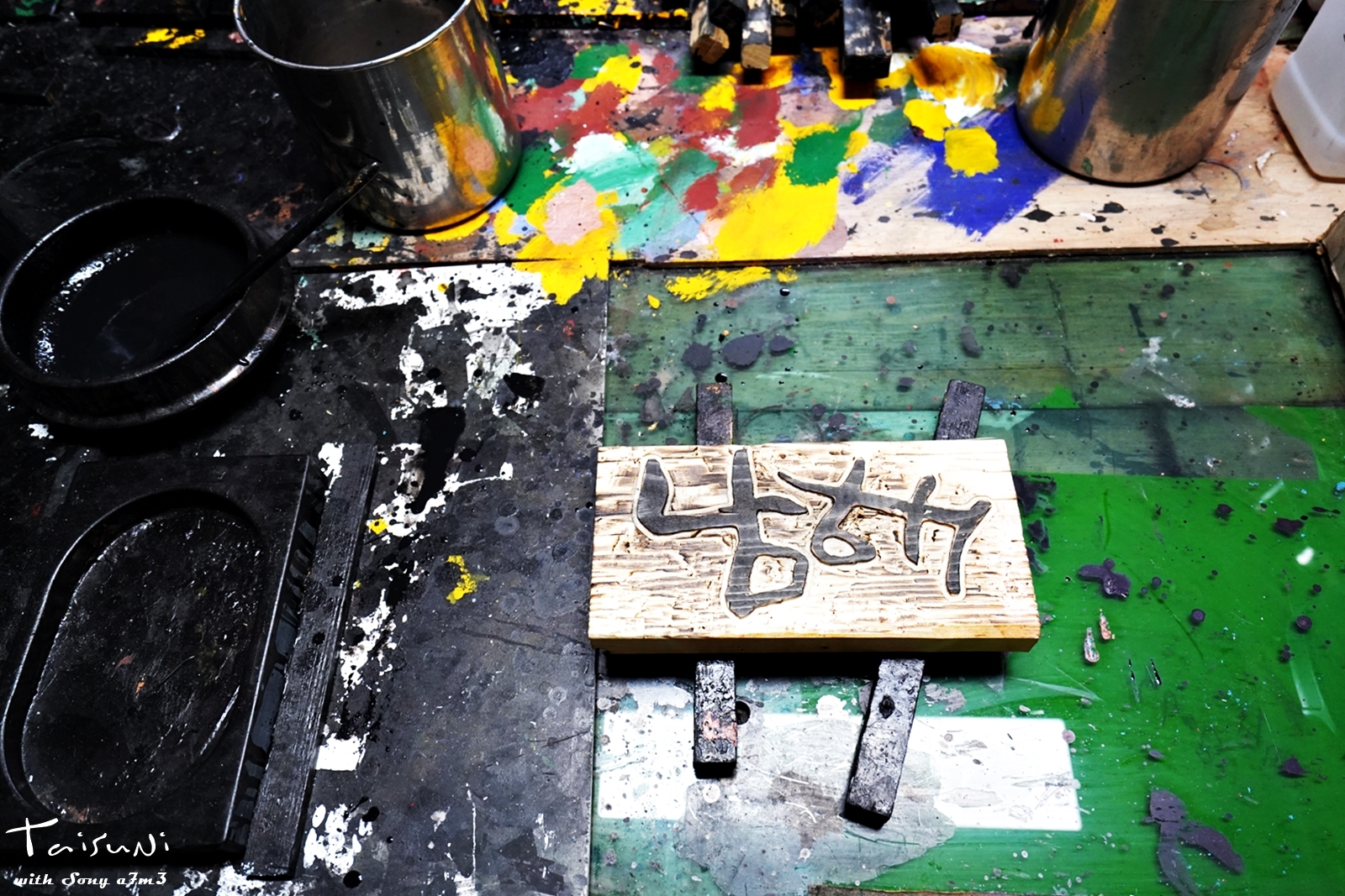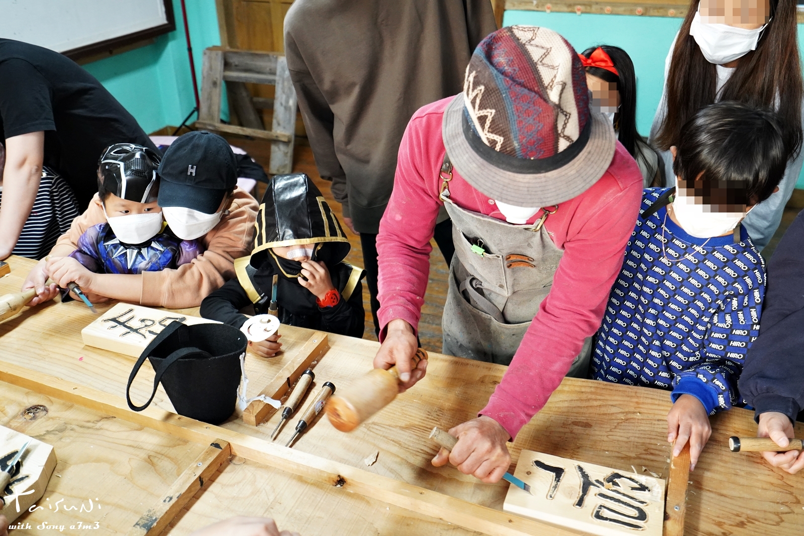 일본에 가서 아이들이 서각체험을 하고