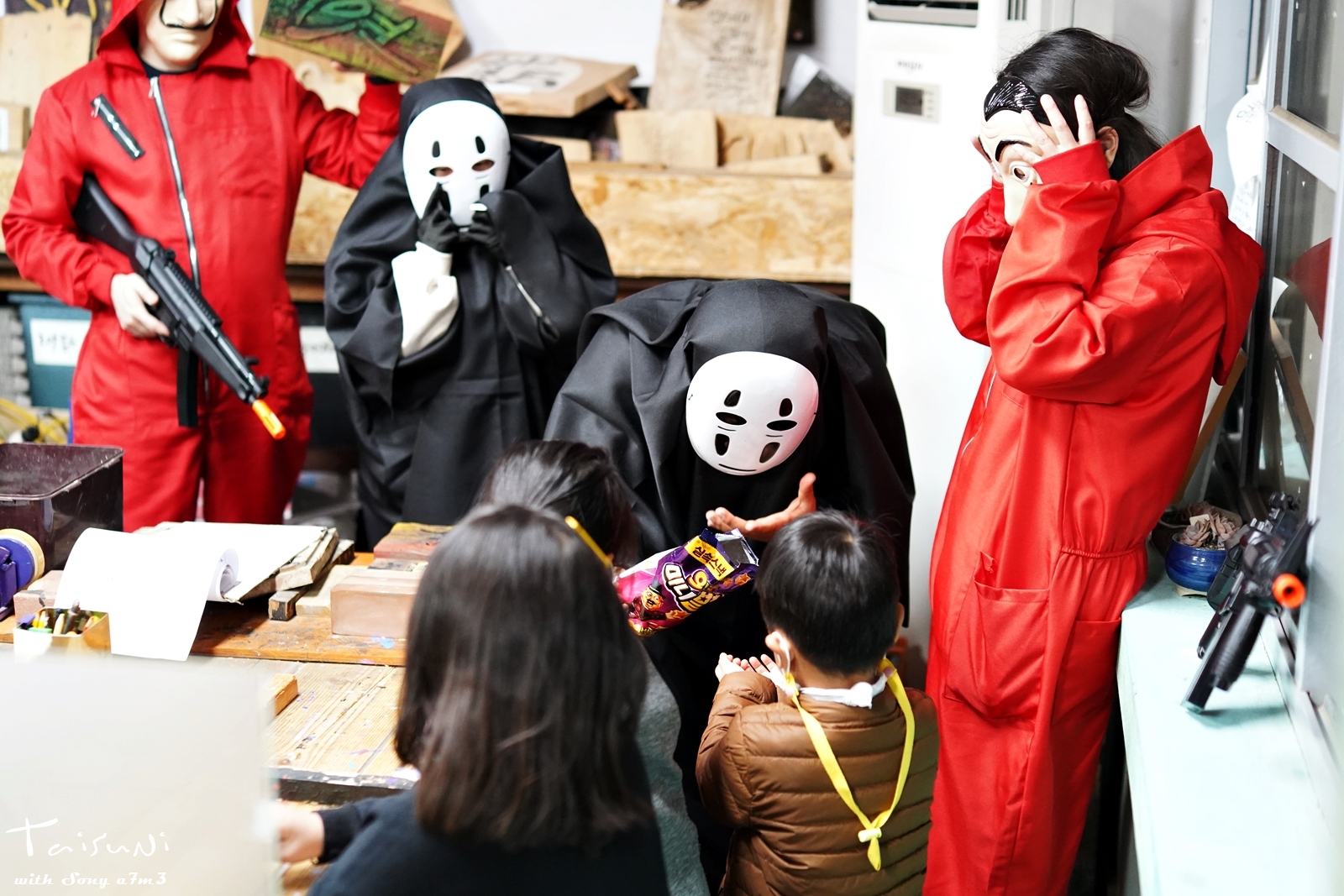 과자를 나눠주는 갱단들 ㅎㅎㅎ